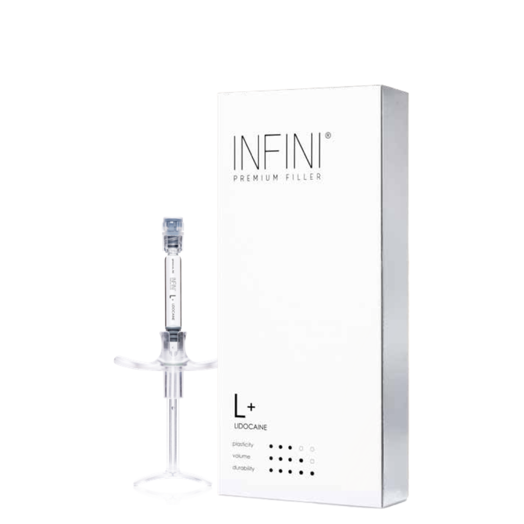 INFINI Premium Filler L+ LIDOCAINE is a gel based on highly crosslinked hyaluronic acid, intended for restoring or increasing soft tissue volume and correcting deep dermal wrinkles. It is ideal for contouring the nose and chin, as well as for filling deep nasolabial folds and marionette lines.